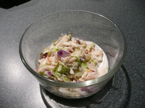 Add 1 c fresh cut pineapple and blend just a bit. | ||