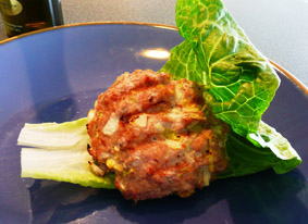 | Shred the cabbage (I cut it by hand into slivers, but can also use a food processor/shredder if you have one) and add to ground turkey in big bowl | |||
